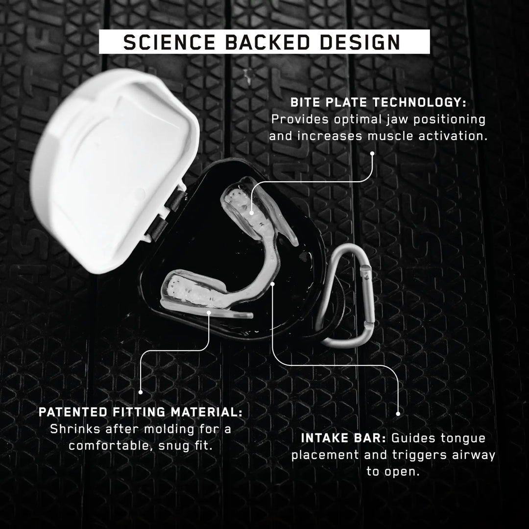 By clenching on the mouthpiece, you enhance neuromuscular response and improve muscle activation throughout the body. This results in increased muscular force during high-intensity exercises and movements.