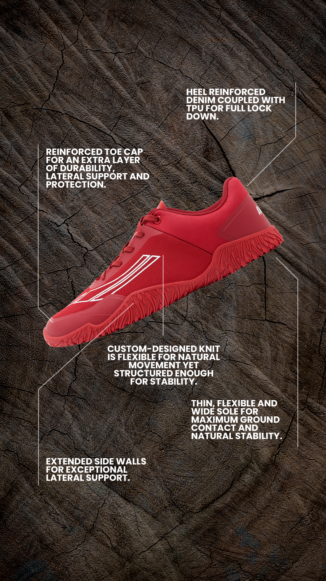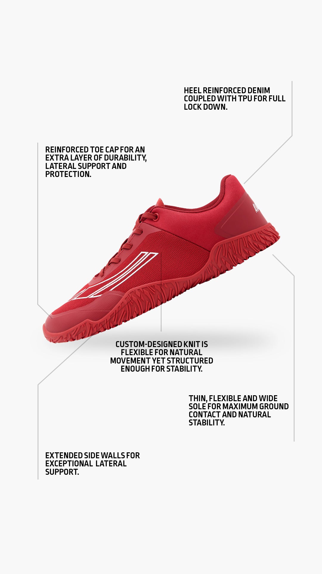 The Apex Power outsole is engineered for precision. Its ultra-thin design brings you closer to the ground for unmatched stability and control. Lightweight yet structured, it maintains flexibility in both linear and lateral directions—allowing your feet to move naturally, activate properly and grow stronger over time.