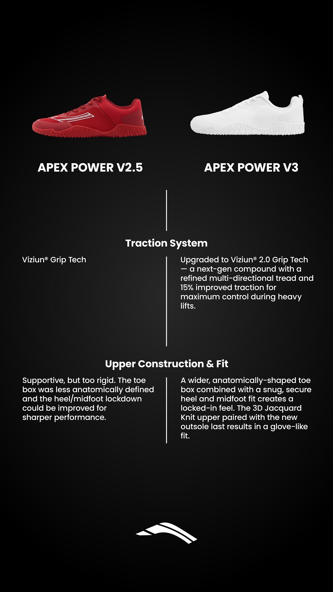 Don't settle for just another footwear. Choose the Apex Power V3 designed to elevate your performance during every lift.