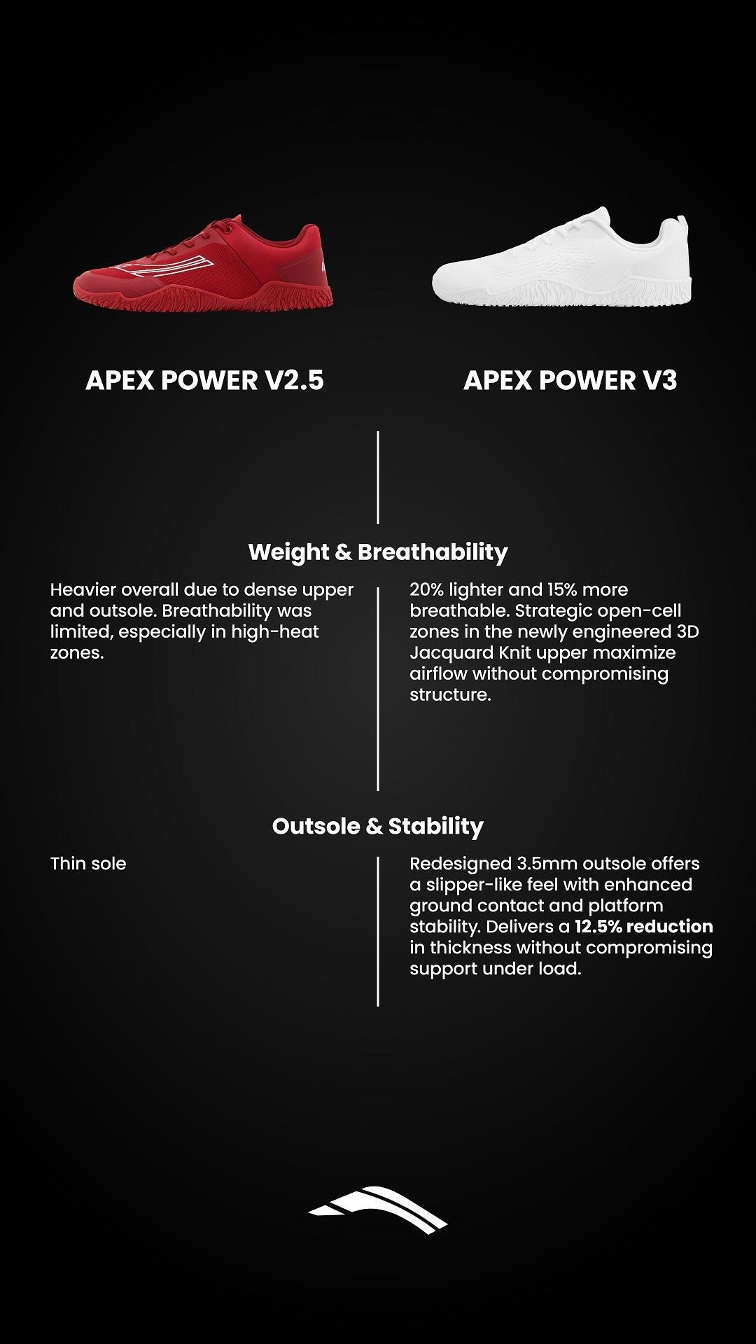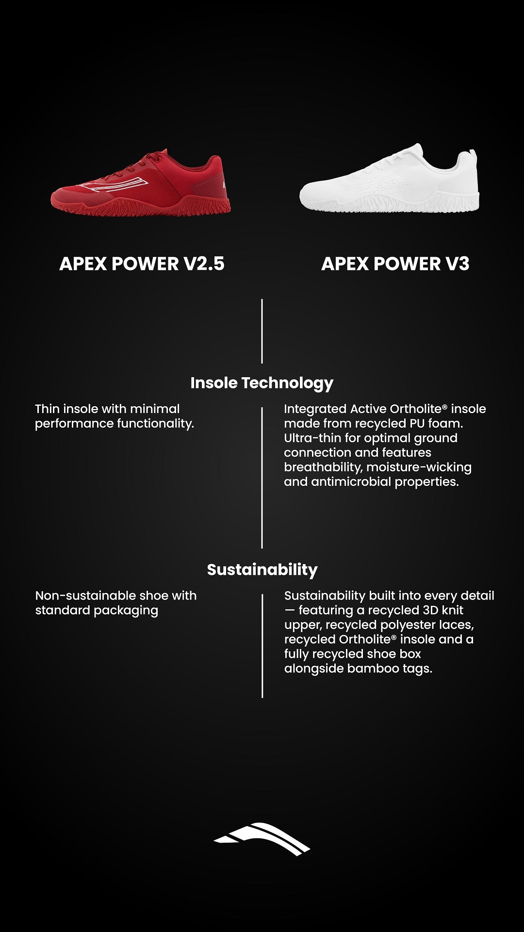 The Apex Power V3 represents an intricately engineered high-performance footwear design. Every element has been reimagined to deliver an experience that adapts to you.