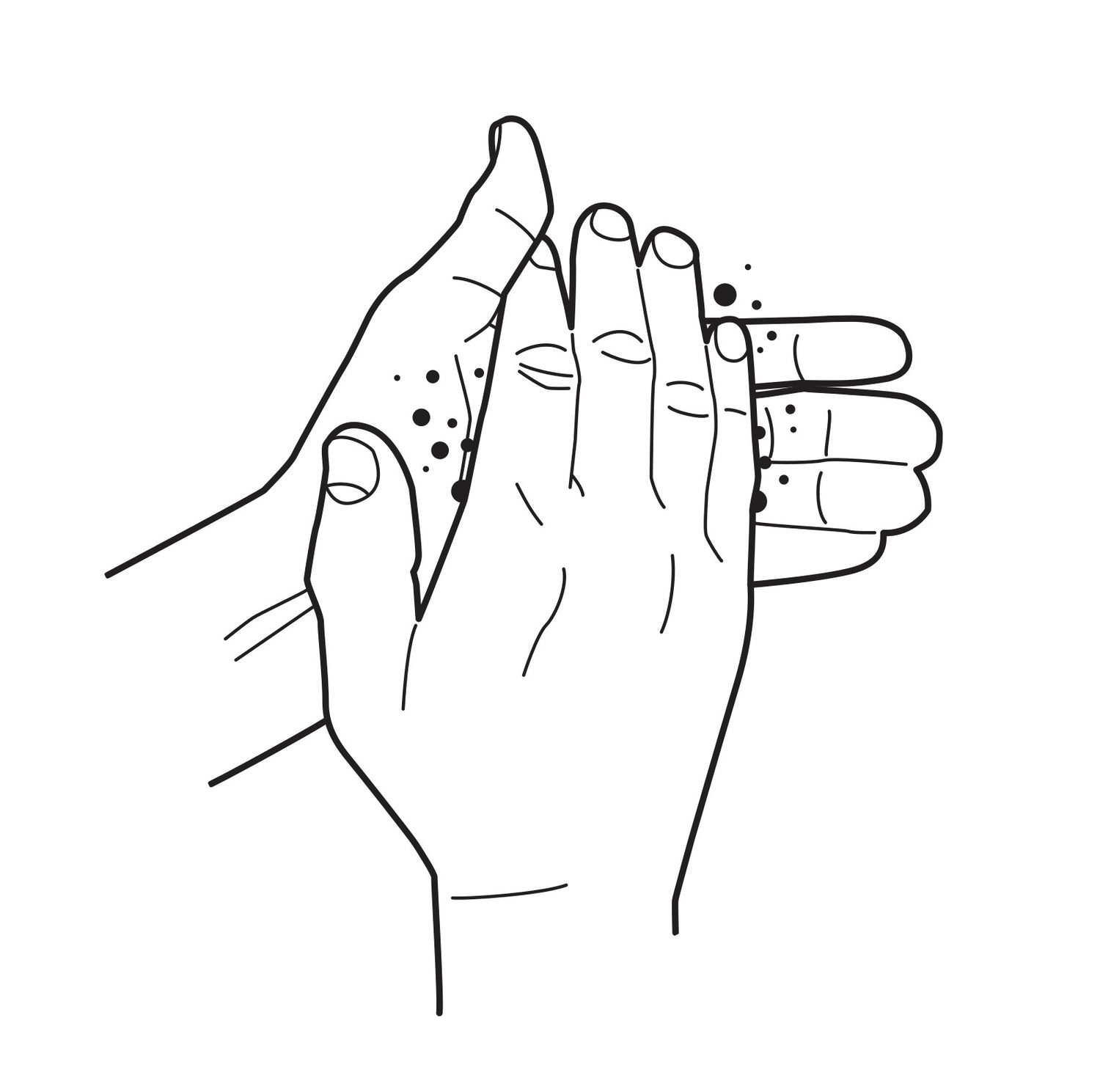 Rub your hands together, working Chalkless between your fingers and up alongthe wrist.