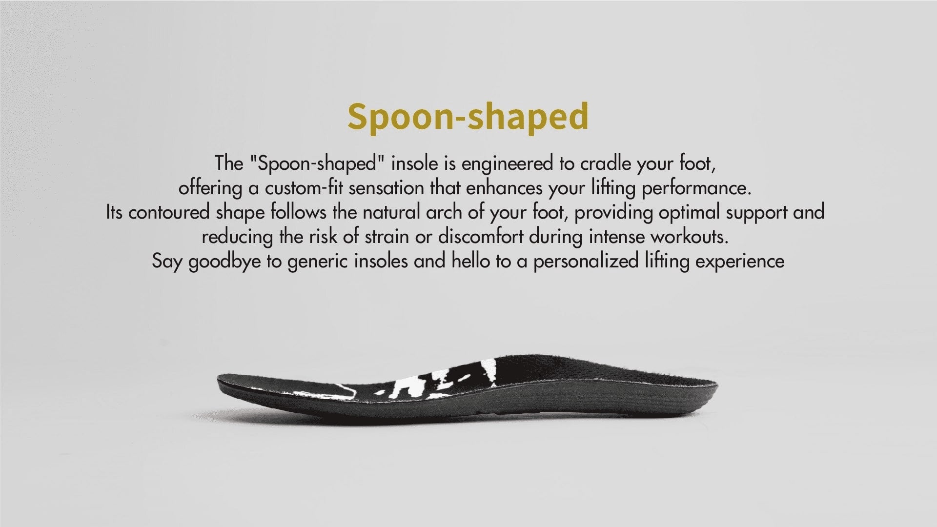 - Insole: The “spoon-shaped” insole cradles your foot, providing a custom-fit sensation that enhances your lifting performance. Its contoured shape follows the natural arch of your foot, offering optimal support and reducing the risk of strain or discomfort during intense workouts.